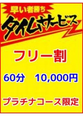 | ひとこと | 本人から一言: 激安タイムサービス! 店長コメント: 不定期開催!店長の気まぐれで発動!!プラチナコースでお遊びのお客様限定でエステティシャンのご指名が無ければ総額4,000円割引にてご案内させて頂きます。お得感が違う最大4,000円割引!お仕事終わりの疲れた心身をお得にスッキリ!! |