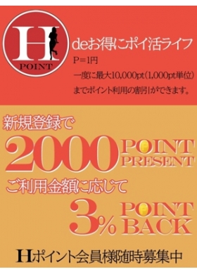 | ひとこと | !新規登録で! ★大量ポイントプレゼント★ メンバーページ開設! ネットで簡単予約!! その名も… 『Hポイント』!! ・当店のご利用がお初めてで、メンバーページ初めて開設される方 ・お店使った事あるけど、メンバーページを初めて開設される方 『2000P付与』!! (登録後初回予約時に使用可能) ※付与に時間がかかる場合があります その後も当店WEB予約からご予約頂くと… ご利用金額に応じてポイントが付与!! 溜まったポイントは 1P=1円 一度に最大10,000pt(1,000pt単位)までポイント利用の割引ができます。 お得にポイ活ライフ |